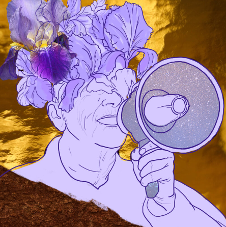أقترح في اليوم العالمي للنساء هذه الرسمة التي نفذتُها خلال فترة العزل الأولى في إطار تحدٍ كان يجب أن نقوم فيه كل يوم بتصوير زهرة جديدة. أردتُ أن أعبّر عن الفرح والنضال والجمال والعيد. هي أشياء ترتبط ببعضها ولا يمكن الاستغناء عنها. كنت أرغب بأن أمثّل جسداً ليس شاباً وأملساَ، فخلطت مواد عدّة هي السوسن والذهب والتراب والقصب. كلها عناصر صلبة ولامعة وهشة أو زائلة... ذلك أنه من الممكن لنا أن نشعّ ونستعيد قوانا ونفرد جذورنا ونشعر بالضعف، أو على العكس، أن نشعر بمنتهى الصلابة".