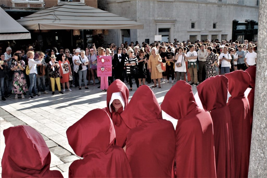 « Évidemment, le comportement irresponsable du gouvernement a touché la corde sensible des personnes et poussé de nombreuses femmes et de nombreux hommes à venir ici aujourd’hui. Notre principal message, c’est que cette histoire montre bien qu’il faut réexaminer les choses. C’est pour cela que nous sommes descendu.e.s dans la rue. Nous ne reculerons pas tant que les choses ne changeront pas. En l’occurrence, nous demandons avant tout la suppression ou du moins le contrôle strict de la clause de conscience, qui n’est en aucun cas un droit absolu » a dit Mirjana Kučer, militante de longue date au sein de l’association Domine à Split, qui a fait une performance dans laquelle les femmes portaient des costumes inspirés de la série télé The Handmaid’s Tale.