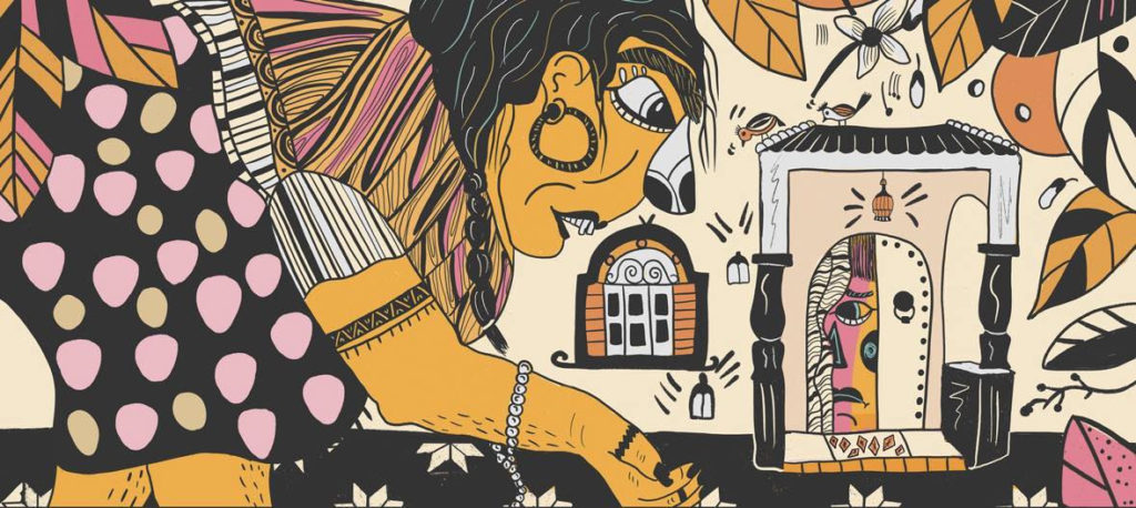 Sonia a été elle aussi élevée par son aïeule, elle lui doit sa passion du dessin : « Ma grand-mère ne savait ni lire, ni écrire mais elle avait cette intelligence de pouvoir raconter n'importe quelle histoire en partant des illustrations. » Une femme « émancipée » et « élégante » qui lui a inspiré L'ogresse du Safsaf, autre conte de Khalil Gharbi. « Petite, l'ogresse pour moi c'était ma grand-mère quand elle se fâchait. Je l'ai dessinée comme quand je l'imaginais avec mes yeux d'enfants », confie avec tendresse Sonia. Elle aussi mesure l'importance de préserver cet héritage culturel et entend bien raconter ces histoires à ses enfants.