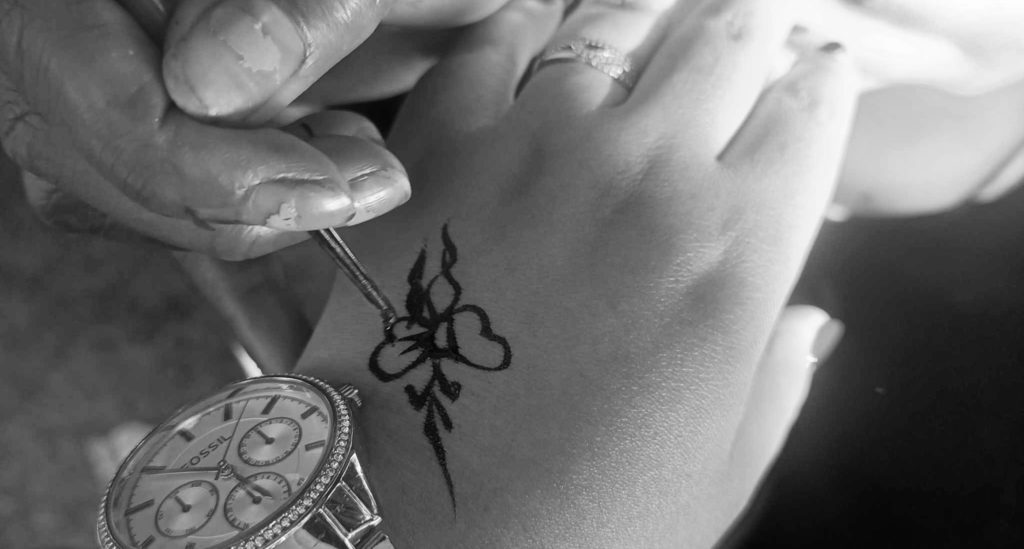 Les séances de Samira s'animent à l'arrivée des femmes désireuses de bénéficier de ses services à la fois ornementaux et spirituels. Certaines viennent pour se faire tatouer au harkous, un art qui perpétue la beauté des traditions. Le harkous est composé d'un mélange de henné en poudre et de substances végétales, diluées dans de l'eau ou d'autres liquides, auxquels sont ajoutés des ingrédients parfumés comme le clou de girofle, les feuilles de galle, l'oxyde de fer, et des huiles pour intensifier la couleur et améliorer la qualité des motifs. Sa préparation prend du temps. On utilise généralement une zliziya – une boîte en céramique pour cuire le harkous à feu doux sur un petit réchaud appelé kanoun.