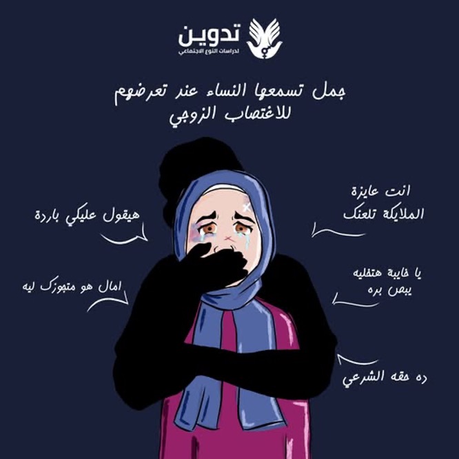 خلال فترة الـ 16 يوم لمناهضة العنف ضد المرأة ابتداءً من 25 نوفمبر، وهو اليوم العالمي للقضاء على العنف ضد المرأة، إلى 10 ديسمبر أطلق "مركز تدوين لدراسات النوع الاجتماعي"، الذي تأسس في مصر عام 2016، بهدف نشر الوعي حول قضايا النوع الاجتماعي والحد من العنف ضد النساء والفتيات ، حملته لتسليط الضوء على جريمة الاغتصاب الزوجي.