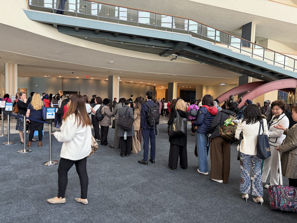 Avant même l’ouverture officielle, un passage obligé attend toutes les participantes : la récupération des badges. Ces accréditations permettent d’accéder aux bâtiments de l’ONU et aux salles de diffusion où sont retransmis la plupart des travaux. L’accès aux salles principales reste très limité et réservé à un.e. seul.e. représentant.e. des organisations disposant du statut consultatif ECOSOC. Un statut difficile à obtenir et qui peut prendre des années. Les files d’attente s’allongent, les conversations portent déjà sur les refus de visas, les annulations et le nombre visiblement réduit de participantes cette année.