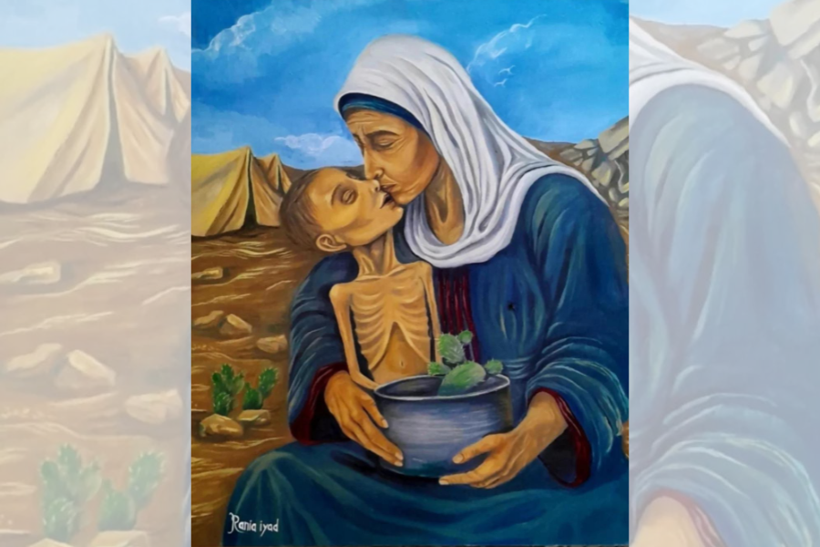 لوحتها "طعامه الأخير كان صبّارًا" ليست مجرد عمل فني، بل وثيقة بصرية عن المجاعة التي بدأت تتسلّل إلى غزة.